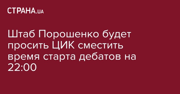 Штаб Порошенко будет просить ЦИК сместить время старта дебатов на 22:00