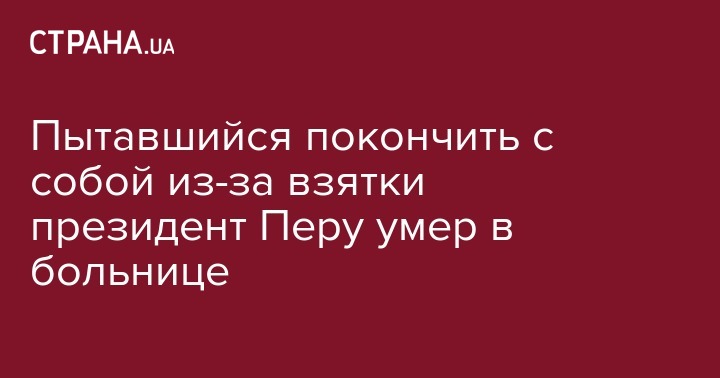 Пытавшийся покончить с собой из-за взятки президент Перу умер в больнице