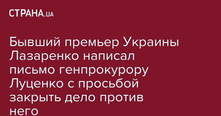Экс-премьер-министр Украины Павел Лазаренко просит генерального прокурора Украины Юрия Луценко о закрытии уголовного производства по подозрению Лазаренко в заказных убийствах известных украинских политиков Евгения Щербаня и Вадима Гетьмана.