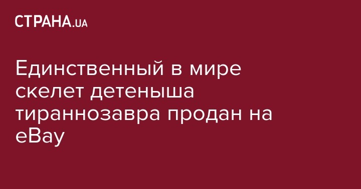 Единственный в мире скелет детеныша тираннозавра продан на eBay