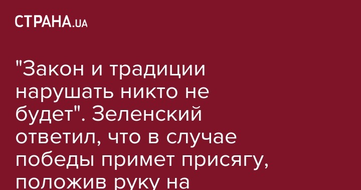 В случае победы во втором туре президентских выборов кандидат в президенты Украины Владимир Зеленский намерен принимать присягу традиционно, положив руку на Евангелие. Его интервью цитирует РБК-Украина