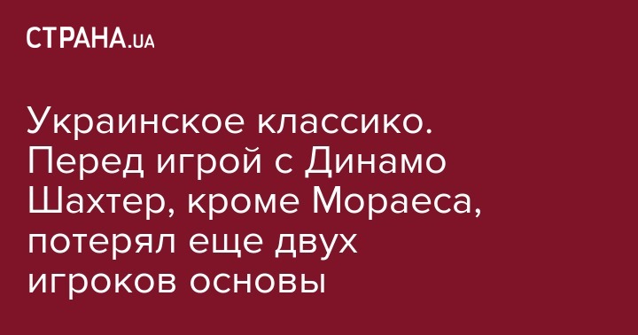 Украинское классико. Перед игрой с Динамо Шахтер, кроме Мораеса, потерял еще двух игроков основы
