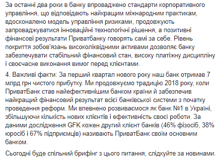 Об этом заявила представительница пресс-служба "Приватбанка" Инна Музычук на своей странице в Facebook.