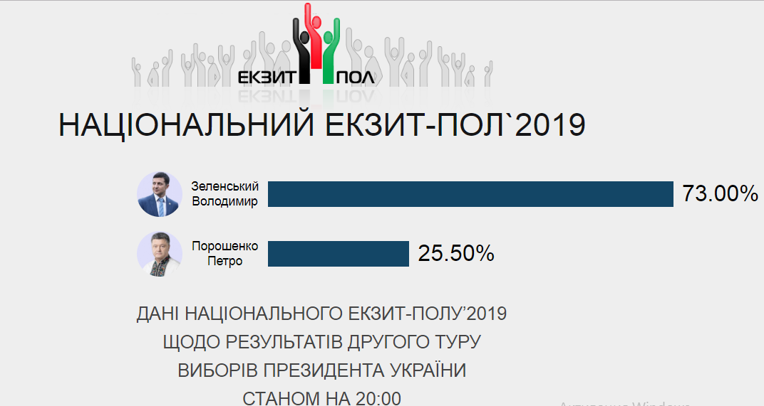 21 апреля, после закрытия избирательных участков, "Национальный экзитпол" огласил предварительные результаты выборов, полученные методом анонимного анкетирования избирателей на выходе с участков. В 22:00 озвучили данные по состоянию на 20:00.