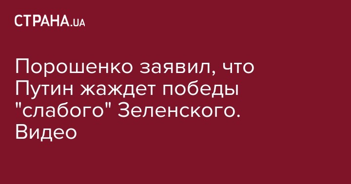 Порошенко заявил, что Путин жаждет победы "слабого" Зеленского. Видео