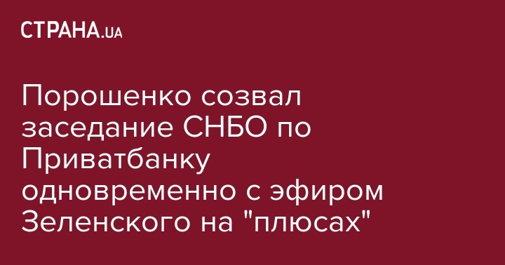 "Созвал совещание в СНБО относительно рисков и угроз в связи с ситуацией, которая сложилась с ПриватБанком. Начало в 21.00", - сообщается в аккаунтах Порошенко в Facebook и Twitter.