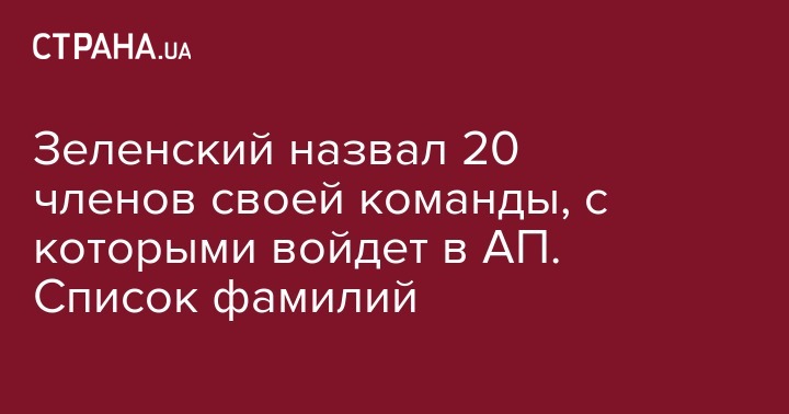Зеленский назвал 20 членов своей команды, с которыми войдет в АП. Список фамилий