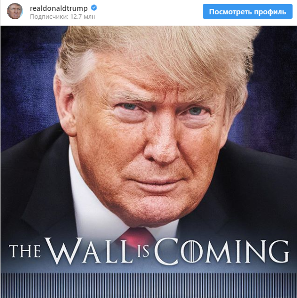 Актуальность финального сезона решил использовать президент США Дональд Трамп, который после выхода 1 серии, опубликовал фото в стиле "Игры престолов". На нем он обыграл ситуацию со строительством "Стены" на границе с Мексикой, появившись в дымке на фоне стены с надписью фирменным шрифтом сериала: "Стена близко" ("The Wall Is Coming").
