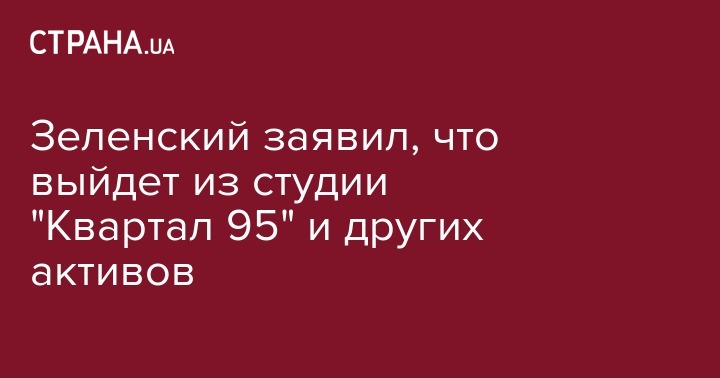 Зеленский заявил, что выйдет из студии "Квартал 95" и других активов