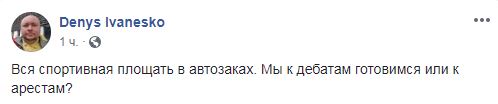 "Вся спортивная площадь в автозаках. Мы к дебатам готовимся или к арестам?" - написал он.