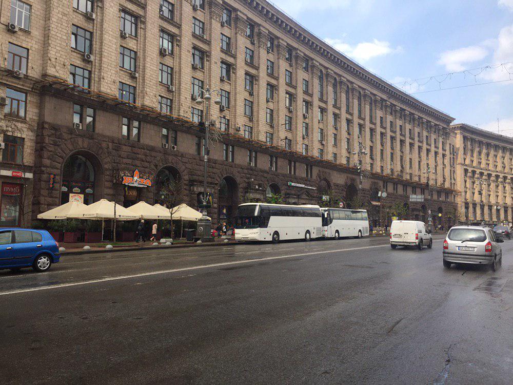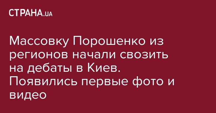 В сети появилось фото и видео автобусов, которые подвезли бюджетников из регионов к НСК "Олимпийский" для поддержки действующего Петра Порошенко на дебатах с другим кандидатом - шоуменом Владимиром Зеленским. Запись выложил в соцсетях журналист 1+1 Евгений Куксин.