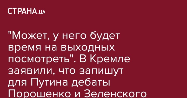 "Может, у него будет время на выходных посмотреть". В Кремле заявили, что запишут для Путина дебаты Порошенко и Зеленского