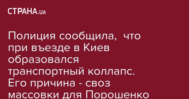 Полиция сообщила, что при въезде в Киев образовался транспортный коллапс. Его причина - своз массовки для Порошенко