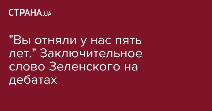 "Вы отняли у нас пять лет." Заключительное слово Зеленского на дебатах
