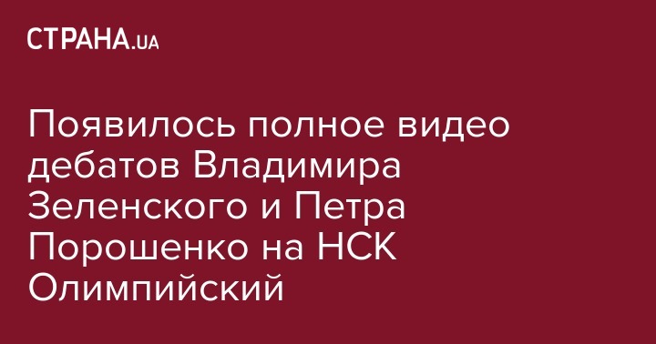 Появилось полное видео дебатов Владимира Зеленского и Петра Порошенко на НСК Олимпийский