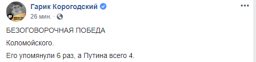 Его упомянули 6 раз, а Путина всего 4", - написал киевский бизнесмен Гарик Корогодский.
