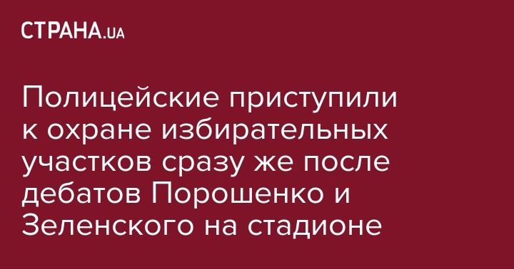 Сегодня, 19 апреля, сразу же после окончания дебатов кандидатов в президенты Украины Петра Порошенко и Владимира Зеленского на стадионе "Олимпийский", личный состав структур Министерства внутренних дел Украины приступили к охране избирательных участков и обеспечения порядка во время голосования на втором туре выборов президента 21 апреля. Об этом сообщает пресс-служба МВД.