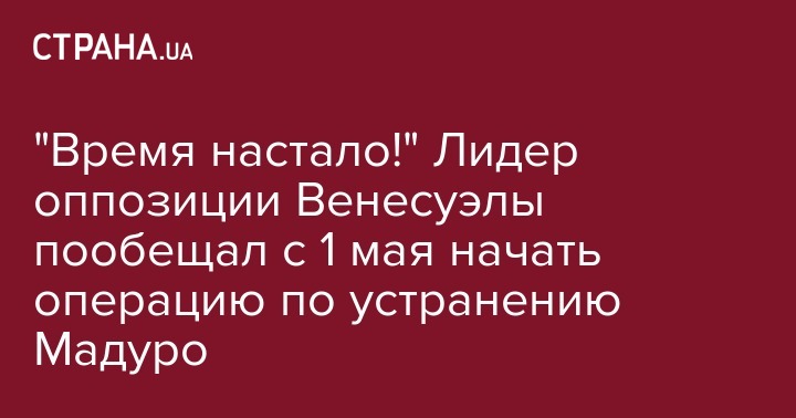 "Время настало!" Лидер оппозиции Венесуэлы пообещал с 1 мая начать операцию по устранению Мадуро