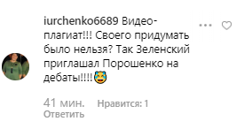 "Видео - плагиат! Своего придумать было нельзя? Так Зеленский приглашал Порошенко на дебаты", - отписываются в комментариях юзеры.