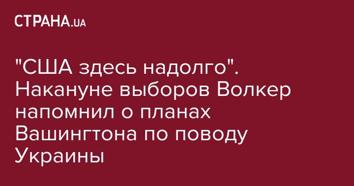 "США здесь надолго". Накануне выборов Волкер напомнил о планах Вашингтона по поводу Украины