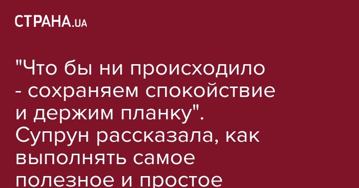 "Что бы ни происходило - сохраняем спокойствие и держим планку. Во всем. Включая физическую активность. В спорте планка - это очень эффективное упражнение для укрепления рук, пресса, спины", - написала Супрун.