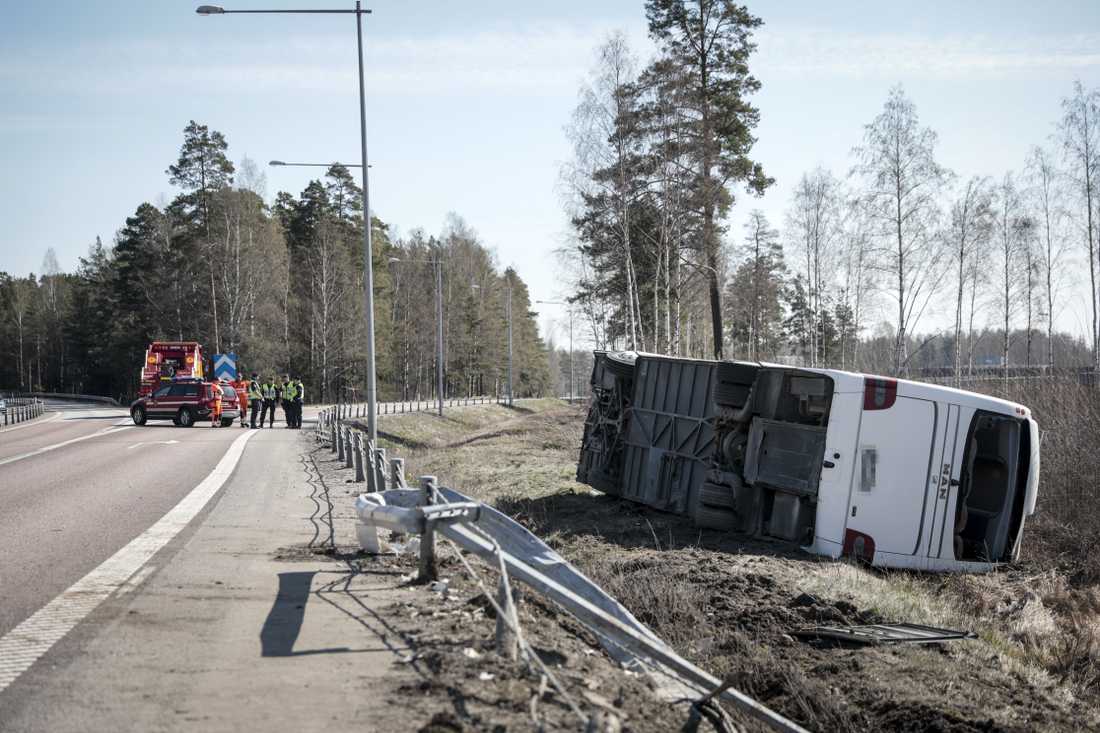 На момент аварии в автобусе было около 29 человек. Они ехали из Осло в Стокгольм. В какой-то момент автобус съехал с дороги в кювет и перевернулся. Причины аварии пока не сообщаются.