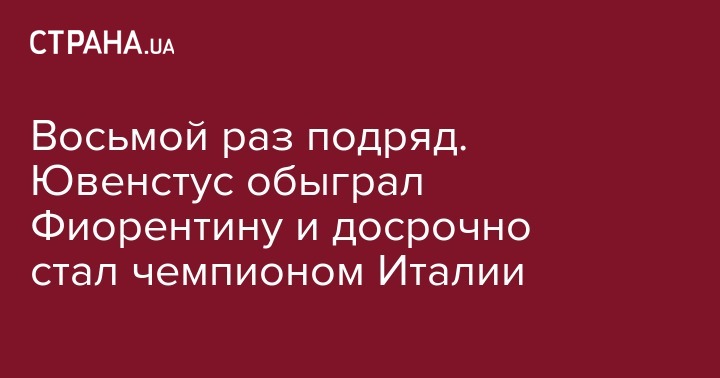 Футбольный клуб Ювентус сегодня, 20 апреля, досрочно стал восьмикратным чемпионом Италии, победив Фиорентину со счетом 2:1. Об этом передает ТАСС.