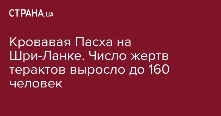 В воскресенье, 21 апреля, на католическую Пасху, на Шри-Ланке прогремела серия взрывов. Число жертв уже достигло 160 человек. Об этом сообщает портал News 1ST со ссылкой на представителей местной полиции.