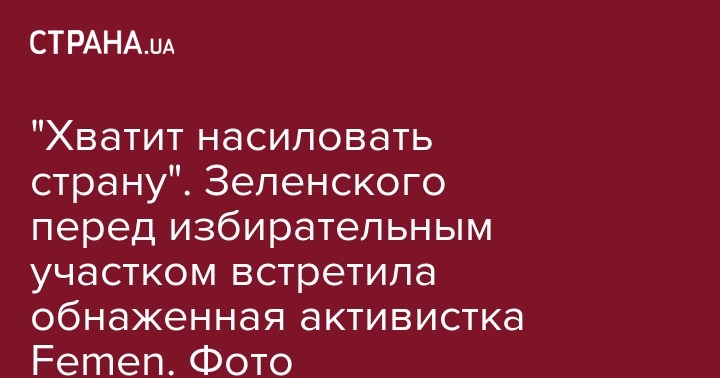 Беременная активистка выкрикивала слоган: "Хватит насиловать страну!". Когда Зеленский зашел на участок, она сняла одежду и осталась в одних брюках.