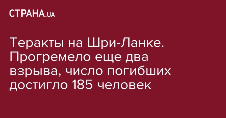 На острове Шри-Ланка увеличилось количество жертв в результате серии взрывов в церквях и отелях, которые прогремели на католическую Пасху 21 апреля. Портал News18.com сообщает уже о 185 погибших.