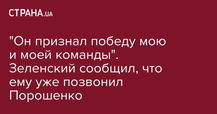 "Он признал победу мою и моей команды". Зеленский сообщил, что ему уже позвонил Порошенко