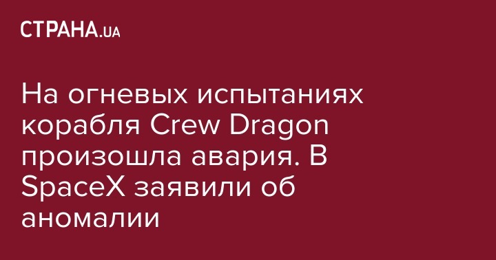 "Первоначальные испытания были успешно завершены, но окончательное испытание привело к аномалии на испытательном стенде", - говорится в сообщении компании SpaceX.