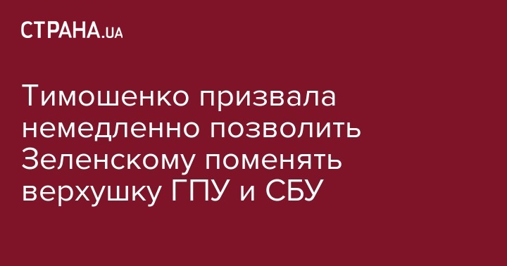 Она потребовала дать возможность Владимиру Зеленскому немедленно поменять силовиков - главу СБУ и генпрокурора, а также призвала к досрочным парламентским выборам и сформировать новый Кабмин.