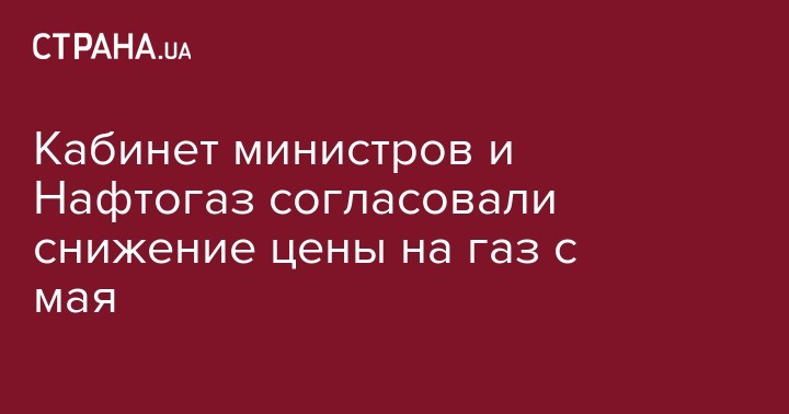 Кабинет министров и Нафтогаз согласовали снижение цены на газ с мая
