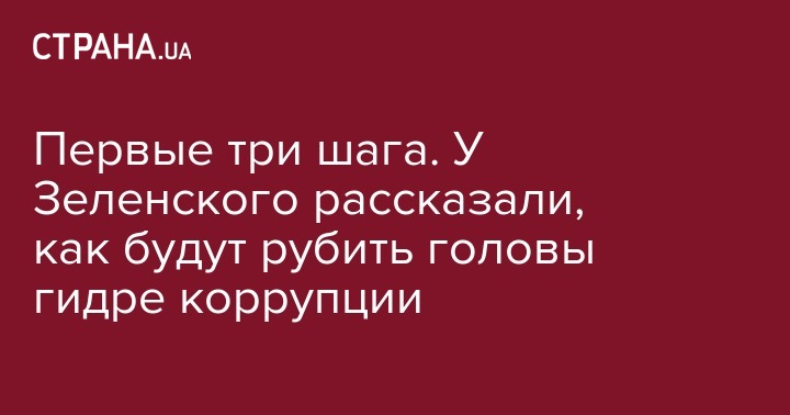 Первые три шага. У Зеленского рассказали, как будут рубить головы гидре коррупции