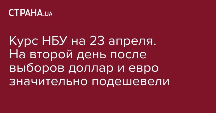 Курс НБУ на 23 апреля. На второй день после выборов доллар и евро значительно подешевели