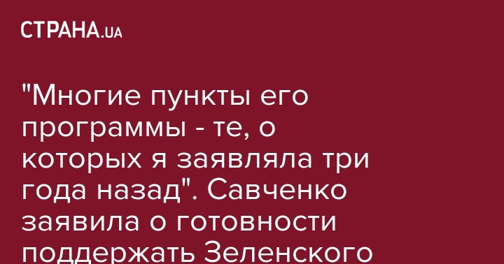 "Многие пункты его программы - те, о которых я заявляла три года назад". Савченко заявила о готовности поддержать Зеленского