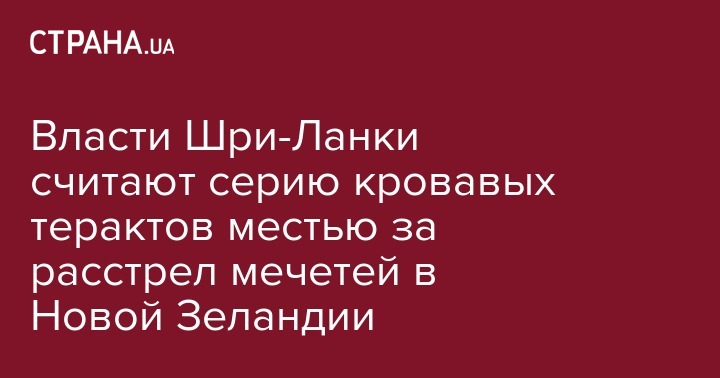 Накрывшая Шри-Ланку серия терактов стала местью за расстрел двух мечетей в Новой Зеландии. Об этом сообщил шри-ланкийский министр обороны и СМИ Руван Виджевардене, передает Reuters.