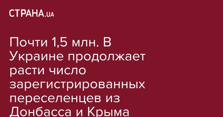 Напомним, что, согласно сообщению Министерства социальной политики Украины, по состоянию на 15 апреля количество зарегистрированных внутренних переселенцев из Крыма и Донбасса составило 1 млн 374 тыс. 806 человек.