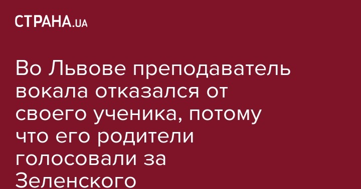 Заслуженный артист Украины и руководитель художественного центра FoRa Владимир Кудовба досрочно расторг договор об обучении 11-летнего парня из-за политических взглядов его отца, который поддерживает Владимира Зеленского. Об этом пишет Zaxid.net.