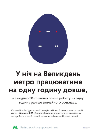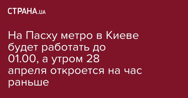 Кроме этого, в воскресенье 28 апреля, метро в столице Украины начнет работать на час раньше, чтобы десятки тысяч людей смогли попасть в храмы и благополучно потом добраться домой с пасхальными корзинками.