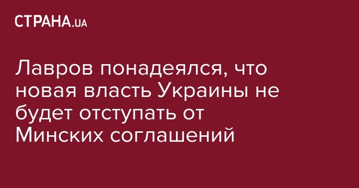 В России рассчитывают на то, что новый президент Украины будет выполнять условия Минских соглашений. Об этом со ссылкой на главу МИД РФ Сергея Лаврова сообщает ТАСС.