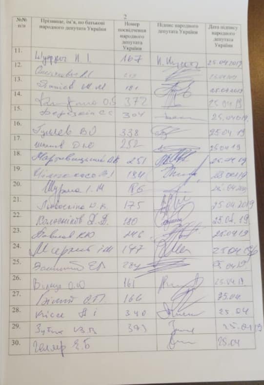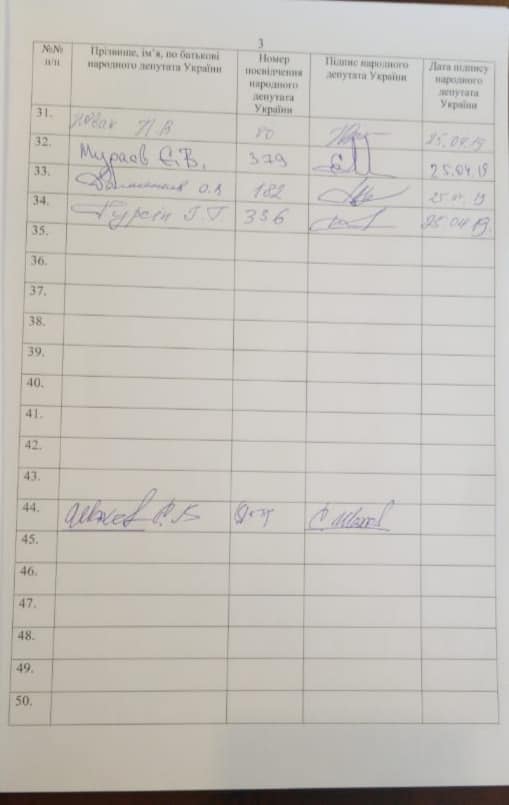 Член депутатской группы "Возрождение" Валерий Писаренко, инициировавший сбор подписей за отставку Парубия с должности спикера парламента, заявил, что за первый день пока удалось собрать только 35 подписей из 150 необходимых. Об этом депутат сообщил на своей странице в Facebook.