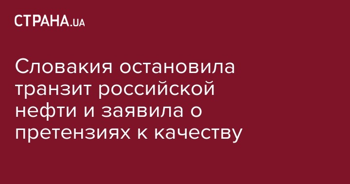 Словацкий нефтеперерабатывающий завод Slovnaft не хочет покупать российскую нефть из-за проблем с ее качеством, поэтому обратился к Transpetrol с просьбой приостановить прокачку. В Transpetrol подтвердили техническую остановку нефте-и газопровода между Украиной и Словакией, утверждая, что она продлится до тех пор, пока не будут урегулированы параметры транспортируемой нефти.