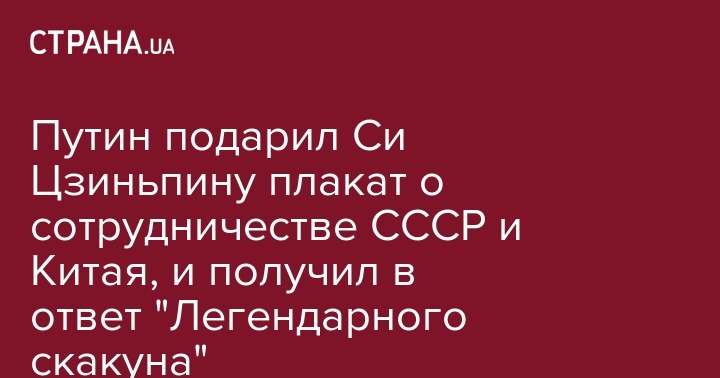 После завершения рабочего завтрака Путин преподнес своему визави плакат "Российско-китайское сотрудничество", созданный в 1956 году художником Исааком Гринштейном.