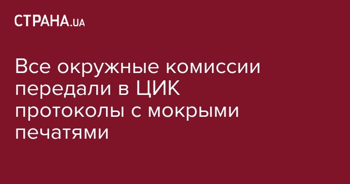Центризбирком принял протоколы с мокрыми печатями из всех 199 окружных комиссий и из заграничного избирательного округа. Об этом сообщает "112 Украина"