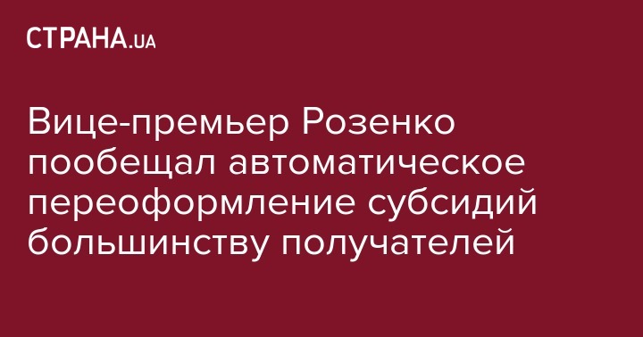 Вице-премьер Розенко пообещал автоматическое переоформление субсидий большинству получателей