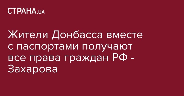 Российские паспорта дадут жителям Донбасса все права, включая защиту со стороны России. Такое заявление сделала официальный представитель МИД Мария Захарова, передает РИА Новости.