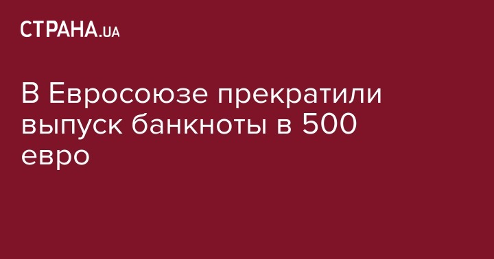 В Евросоюзе центральные банки прекратили выпуск банкнот номиналом в 500 евро. Об этом передает Bloomberg.