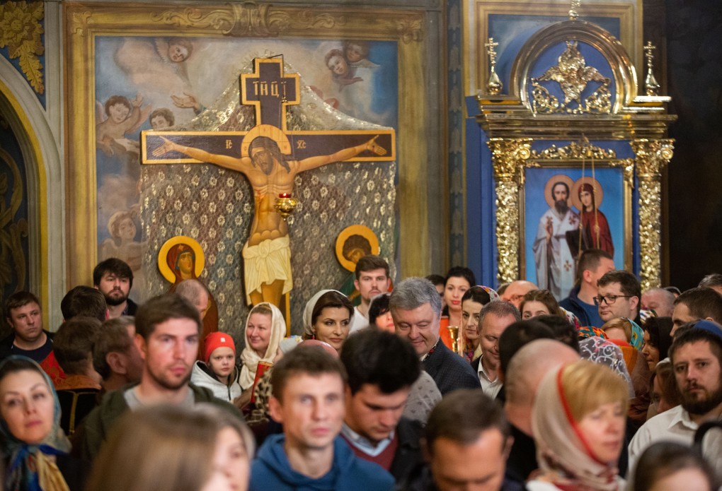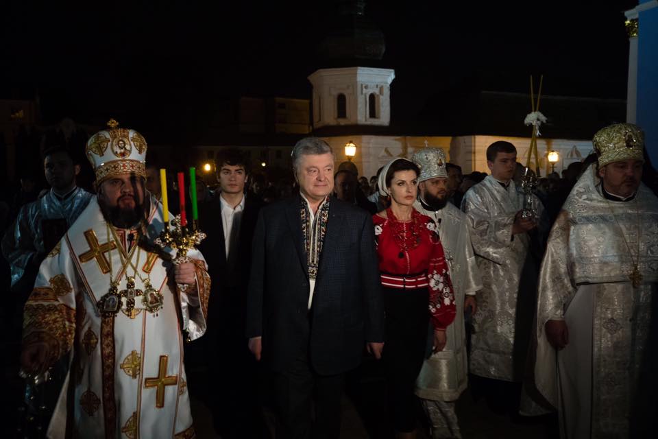 В ночь на 28 апреля завершающий свою каденцию президент Украины Петр Порошенко с женой Мариной и сыном Михаилом принял участие в Пасхальном богослужении в Свято-Михайловском Соборе в Киеве, который контролируется Православной церковью Украины (ПЦУ). Об этом сообщает пресс-служба главы государства.